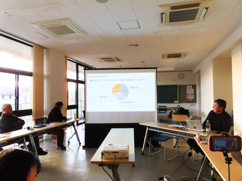 デイサービスの送迎を地域の交通資源として捉え直し、人手不足とコスト増が深刻化する通所介護の送迎業務を、DXと介護タクシーを活用してどのように再設計すればよいのかを、実践事例をもとに検討しました。送迎用配車システム「福祉Mover」の開発や、介護タクシーとのマッチングによる外部化の仕組みについて北嶋氏から解説いただき、送迎業務の負担軽減と質・安全性の両立、持続可能な運営モデルの可能性について考えました。